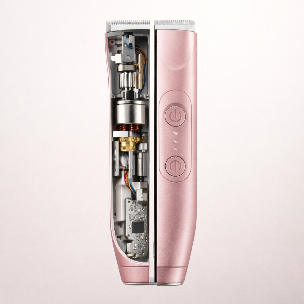Cheap trimmers use straight blades that drag. We use precision-engineered curved blades with rounded tips that glide along your contours. The difference is immediately noticeable.
